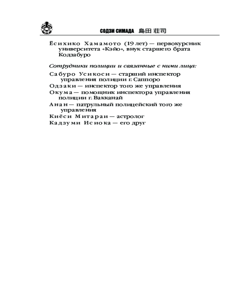 «Бог Загадки» — так называют Содзи Симаду в Японии. Это он создал хонкаку-детектив — новый жанр, столь популярный в Стране Восходящего Солнца. Детектив, в котором читателю предложена честная интеллектуальная игра: раскрыть дело раньше, чем это сделает главный герой.