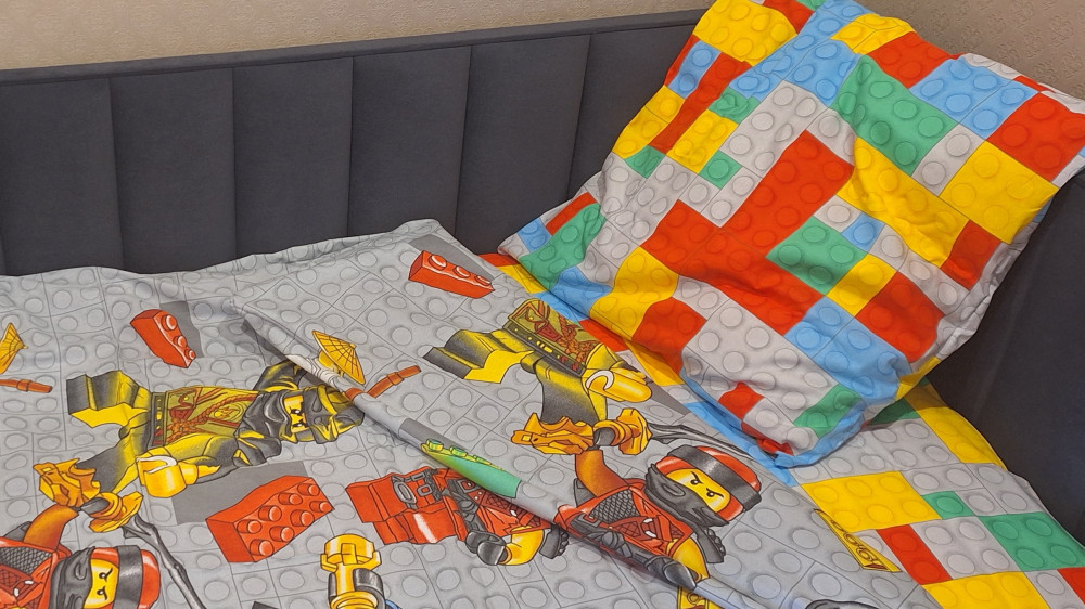 Приятная дышащая ткань с весёлой детской расцветкой. Не линяет после стирки.