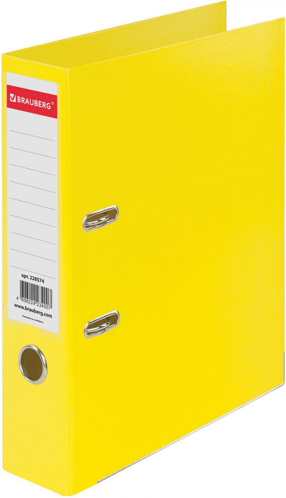 Папка-регистратор BRAUBERG «Extra» предназначена для временного или длительного хранения, систематизации, архивирования документов. Такие папки используются в работе офисными сотрудниками различных специальностей, направлений, должностей. Папка-регистратор станет главным помощником для работников с документацией благодаря большой вместительности и стандартным размерам. Папка-регистратор BRAUBERG «Extra» в формате А4 вертикальной ориентации — классический вариант хранения документов. Чем толще в папке корешок, тем больше листов можно расположить: ширина корешка в 75 мм позволяет разместить до 500 листов. Изготовлена из плотного картона, ламинированного с двух сторон цветной яркой пленкой из полипропилена, который не имеет резкого запаха, более долговечный и морозоустойчивый. Благодаря такому плотному покрытию допустима влажная уборка изделия. Нижние края папки защищены металлическим уголком, что позволяет служить в 2 раза дольше. Прорези для колец на внешней крышке позволяет оставаться папке закрытой даже при большом количестве бумаг. Яркий желтый цвет папки-регистратора серии «Extra» — смелое решение, чтобы разбавить серые рабочие будни.