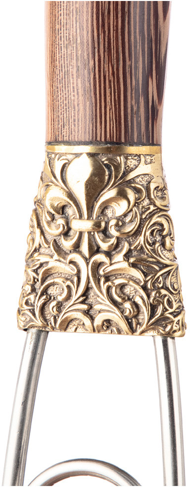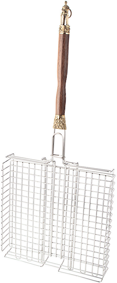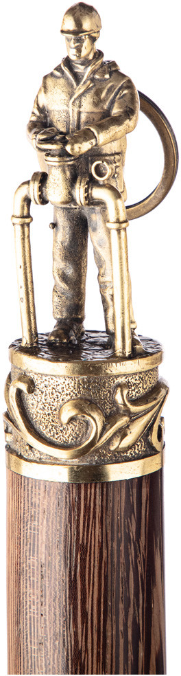 Решетка-гриль с ручкой из венге с бронзовой фигуркой газовщика, откручивающего винтиль газовой трубы — отличный подарок для работника газовой отрасли. Ручная работа художественного литья точно передает тонкие детали композиции. Под фигуркой растительный орнамент.