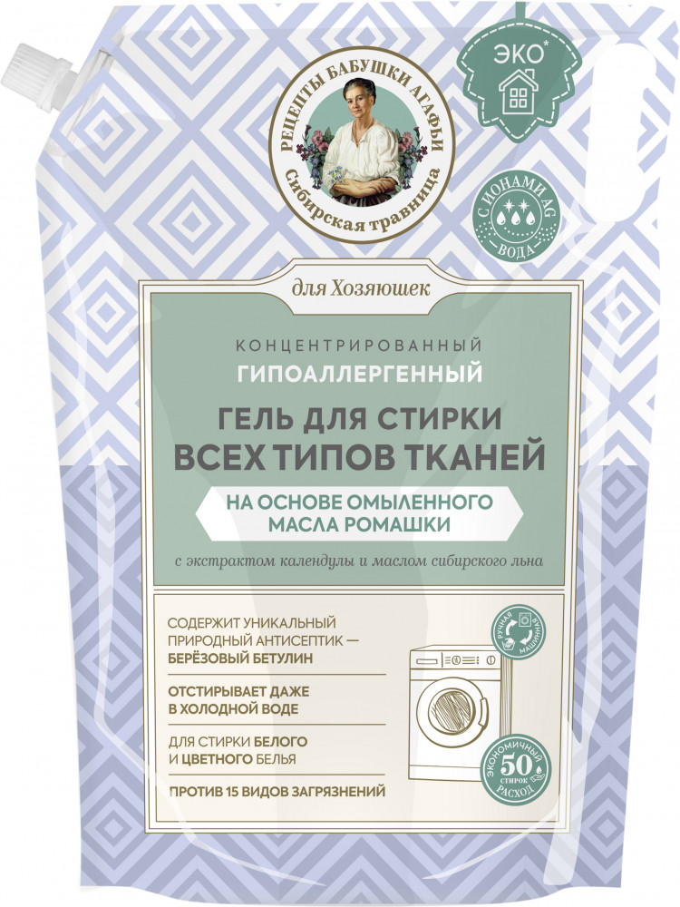 Рецепты Бабушки Агафьи Гель для стирки всех типов тканей концентрированный на основе масла ромашки