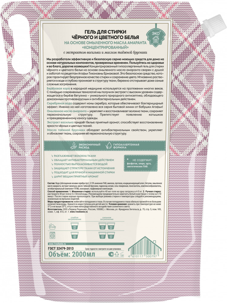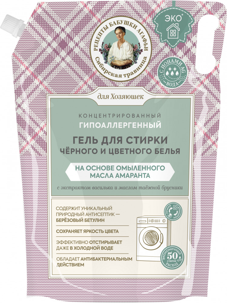Рецепты Бабушки Агафьи Гель для стирки чёрного и цветного белья концентрированный на основе масла амаранта