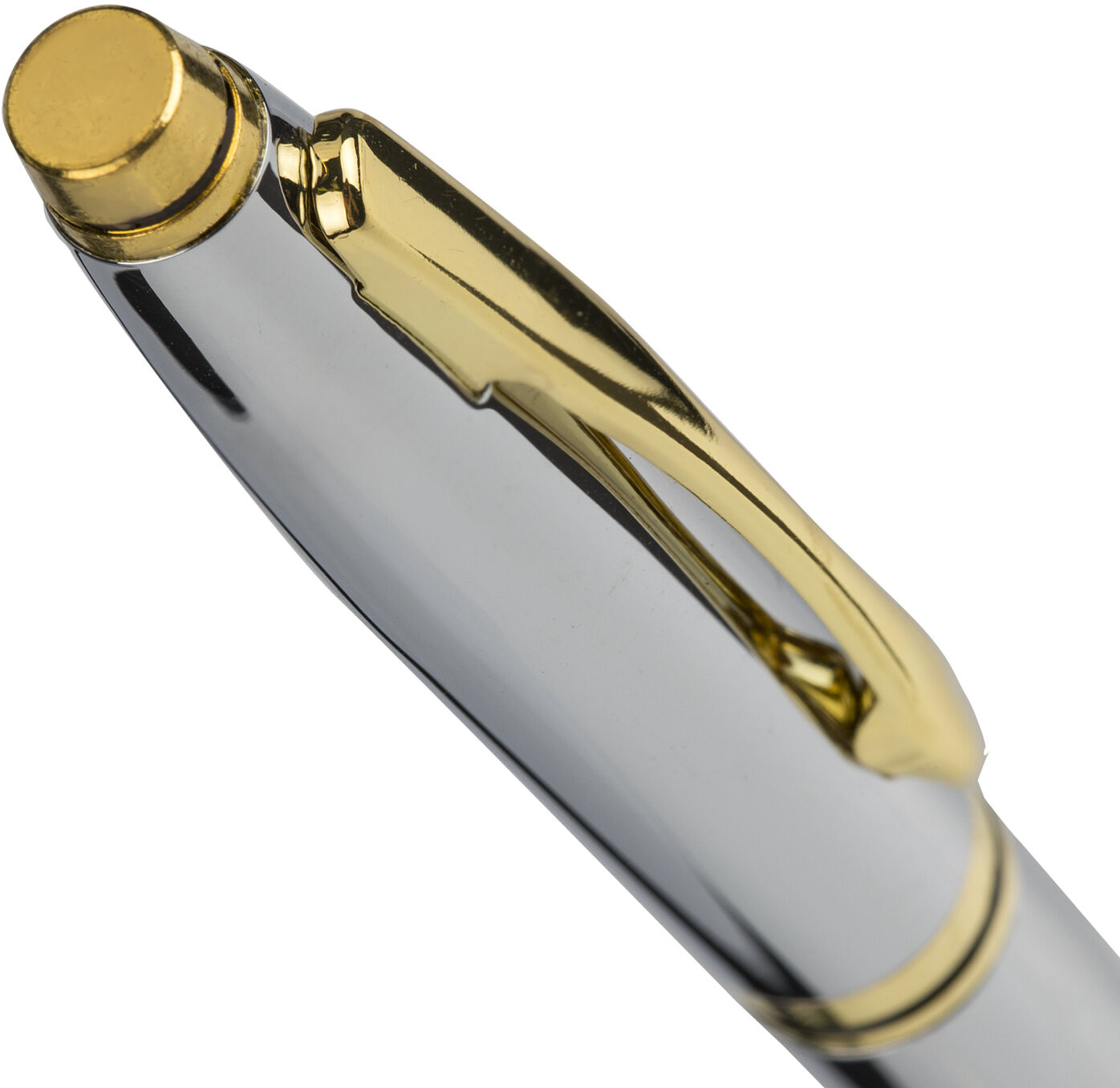 💳 Оплатить за товар можно при получении 🇰🇿 Есть бесплатная доставка по Казахстану от 1 дня 🎁 Копите бонусы с каждой покупки Серия: De Luxe Стильная ручка с позолоченными деталями серии «De luxe Silver» подчеркнет индивидуальность и станет достойной визитной карточкой своего владельца. Серебристый корпус ручки выполнен из металла и декорирован позолоченными деталями. Стержень типа «Cross» имеет длину 116 мм. Диаметр пишущего узла, равный 1 мм, создает линию письма, равную 0,7 мм. Поворотный механизм обеспечивает надёжность при использовании ручки. Возможно нанесение логотипа. Поставляется в фирменной коробке. |