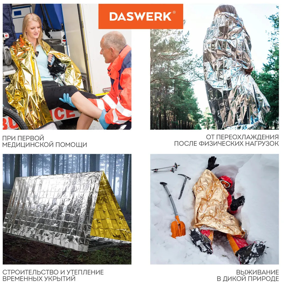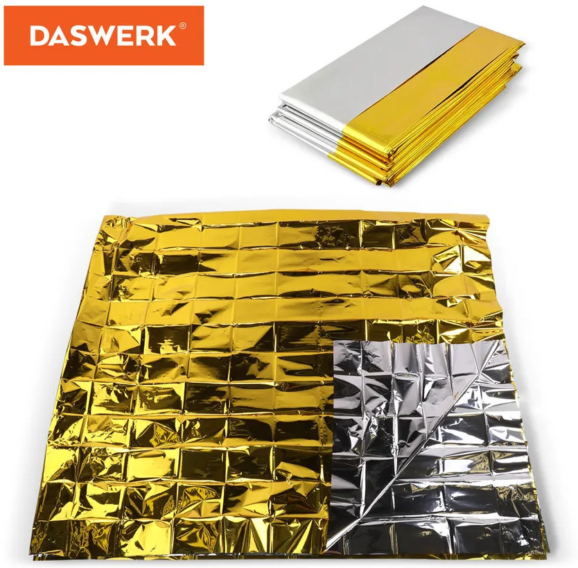 Термоодеяло/покрывало изотермическое представляет собой полиэфирную пленку с металлическим напылением. При расположении серебристой стороной к телу изотермическое одеяло обеспечивает защиту от большой быстрой потери тепла и возможного обморожения, золотистой — от перегрева за счет способности отталкивать солнечные лучи. Изделие позволяет сохранить до 90% тепла человеческого тела. При необходимости поможет переждать непогоду: укрыться от дождя, снега, ветра. Используется как подстилка на землю.