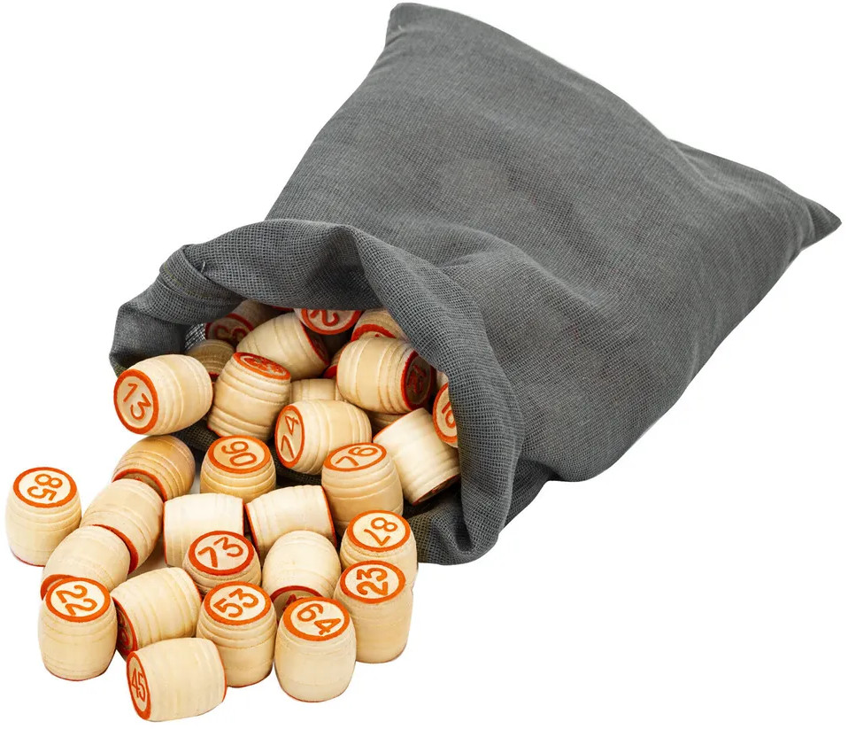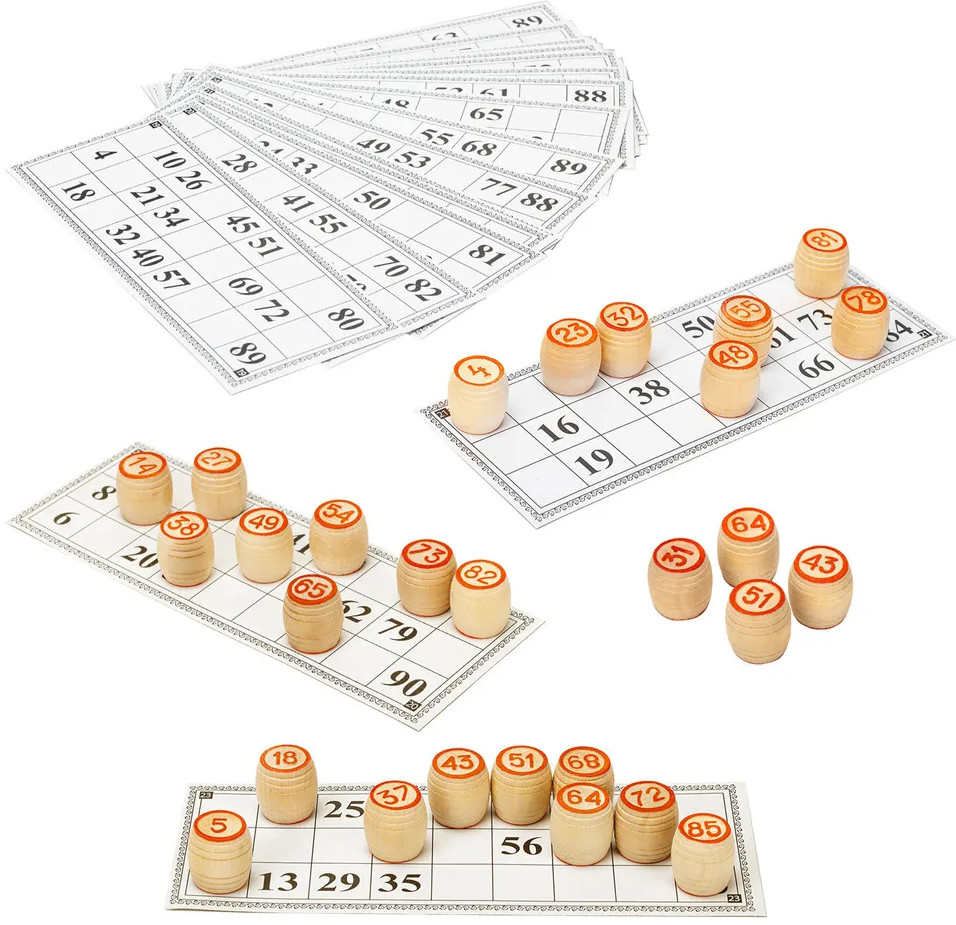 Настольная игра Русское лото включает в себя 90 оформленных в классическом стиле деревянных бочонков, упакованных в бязевый мешочек с завязками, 57 картонных заставок, 24 картонные карточки с числами. Русское лото — игра, которая пришла к нам из глубины веков, перешагнув через страны и континенты, обойдя всевозможные запреты, и которая с каждым годом набирает все больше и больше почитателей.