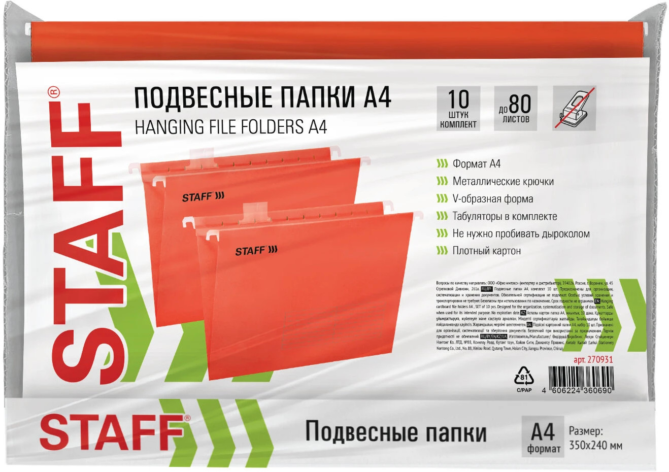 Staff Набор папок подвесных для бумаг и документов-10% +137