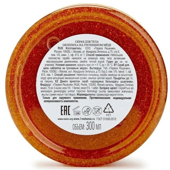 Рецепты Бабушки Агафьи Скраб для тела «Облепиха на гречишном меде»