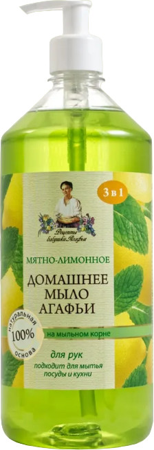 Рецепты Бабушки Агафьи Мыло жидкое домашнее «Мятно-лимонное»