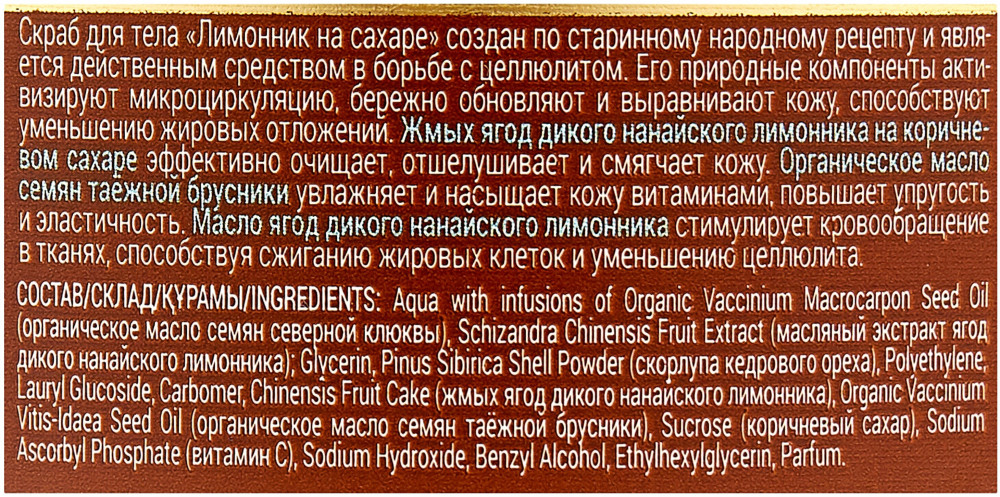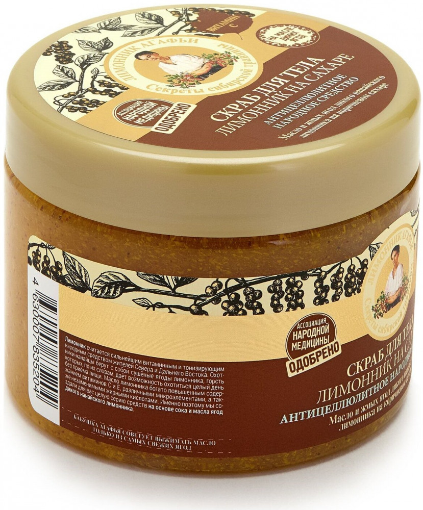 Рецепты Бабушки Агафьи Скраб для тела антицеллюлитный «Лимонник на сахаре»