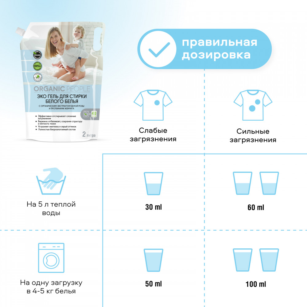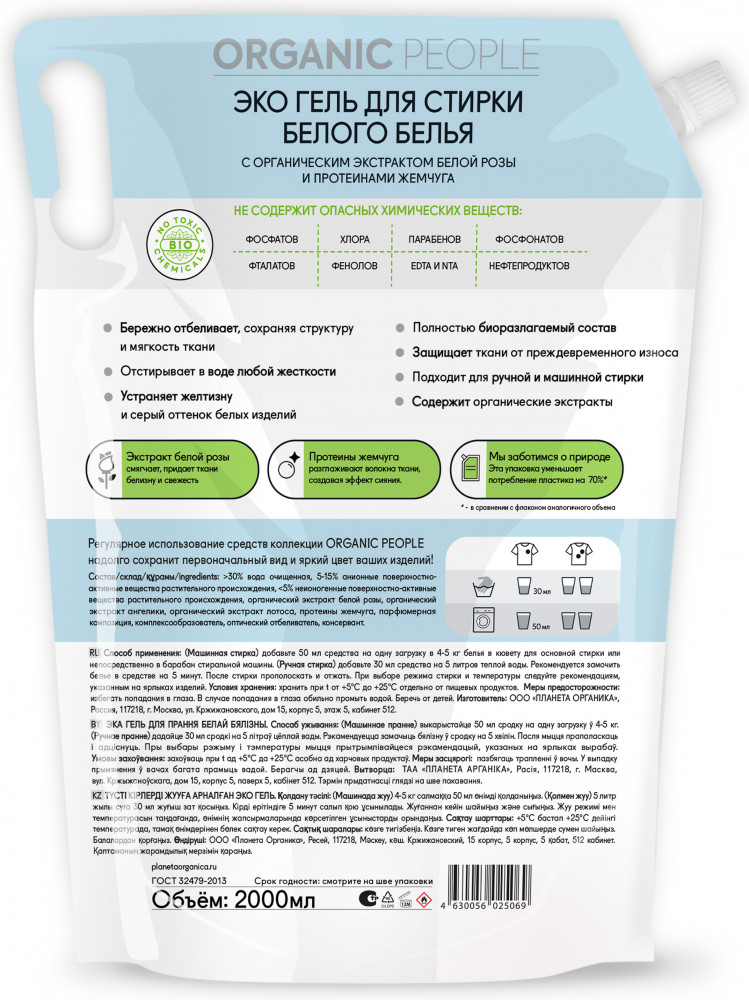 Organic People Гель для стирки белого бельяВ данный момент этот товар отсутствует в продаже. Возможно, у нас найдется аналогичный или похожий товар здесь. Эко гель для стирки белого белья — безопасное средство, которое гарантирует безупречное качество стирки белого белья и тканей светлых оттенков. Бережно отбеливает, сохраняя структуру и мягкость волокон ткани и защищая их от преждевременного износа. Благодаря уникальной высокоэффективной формуле гель идеально отстирывает и растворяет сложные загрязнения в воде любой жесткости. Устраняет желтизну и серый оттенок белых изделий, придавая ткани ослепительную белизну и свежесть. Органический экстракт белой розы смягчает волокна ткани, придает им белизну и свежесть. Протеины жемчуга разглаживают и укрепляют волокна ткани, создавая эффект сияния. Полностью биоразлагаемый состав. Не содержит опасных химических веществ: фосфатов, фталатов, хлора, фенолов, парабенов, EDTA и NTA, фосфонатов и нефтепродуктов. |