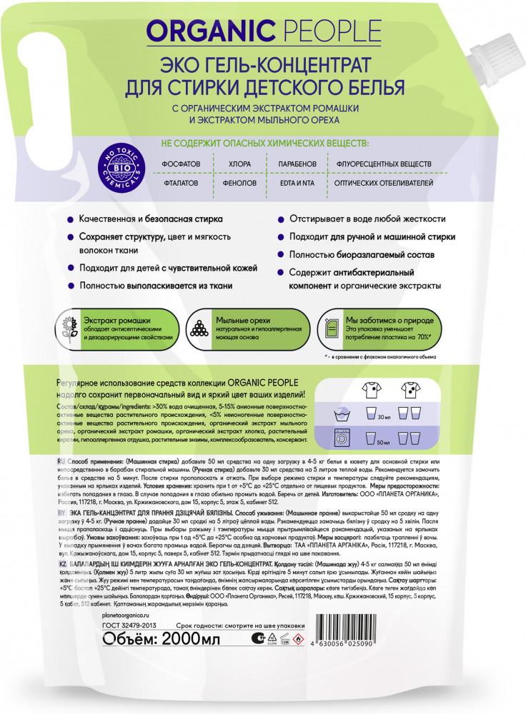 Organic People Гель для стирки детского бельяВ данный момент этот товар отсутствует в продаже. Возможно, у нас найдется аналогичный или похожий товар здесь. Безопасное и бережное средство, гарантирующее безупречное качество стирки детской одежды и белья. Благодаря экстрамягкой и высокоэффективной формуле гель мгновенно растворяется в воде и глубоко проникает в структуру ткани. Эффективно и бережно отстирывает различные виды бытовых загрязнений с детских вещей. Полностью выполаскивается из ткани, не содержит агрессивных химических веществ, поэтому подходит для стирки детского белья и одежды людей с чувствительной кожей. Органический экстракт ромашки обладает природным антисептическим и дезодорирующим свойством. Делает белье мягким и свежим, дарит приятный аромат. Органические мыльные орехи — натуральное и полностью гипоаллергенное средство для стирки, подаренное самой природой. Отлично смягчают воду, бережно очищают от загрязнений и деликатно воздействуют на волокна ткани, защищая вещи от преждевременного износа. |