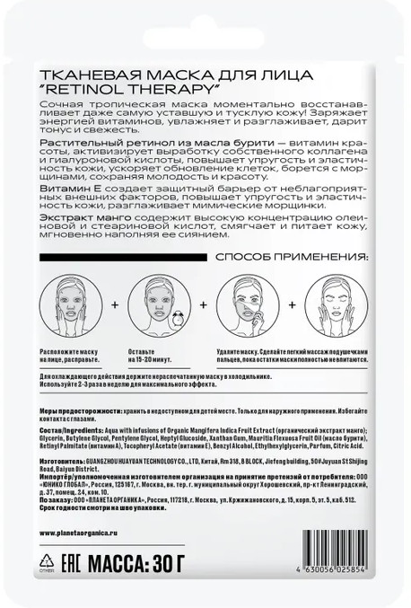 Planeta Organica Маска для лица тканевая «Retinol Therapy»