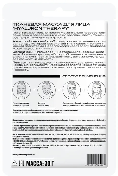 Planeta Organica Маска для лица тканевая «Hyaluron therapy»