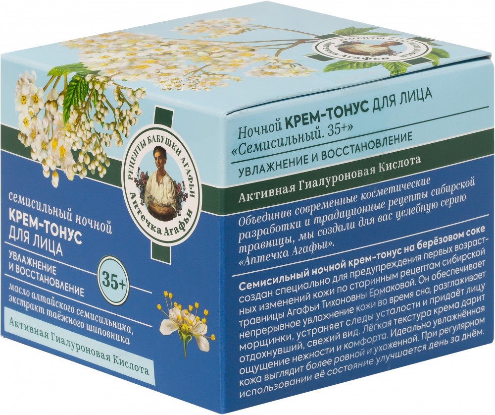 Рецепты Бабушки Агафьи Крем-тонус для лица ночной «Семисильный. 35+»