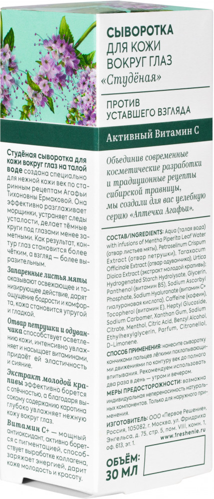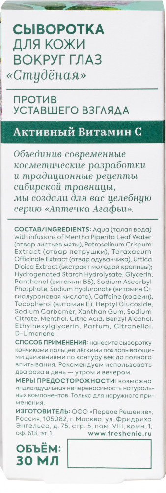 Рецепты Бабушки Агафьи Сыворотка для кожи вокруг глаз «Студёная. Против «уставшего взгляда»