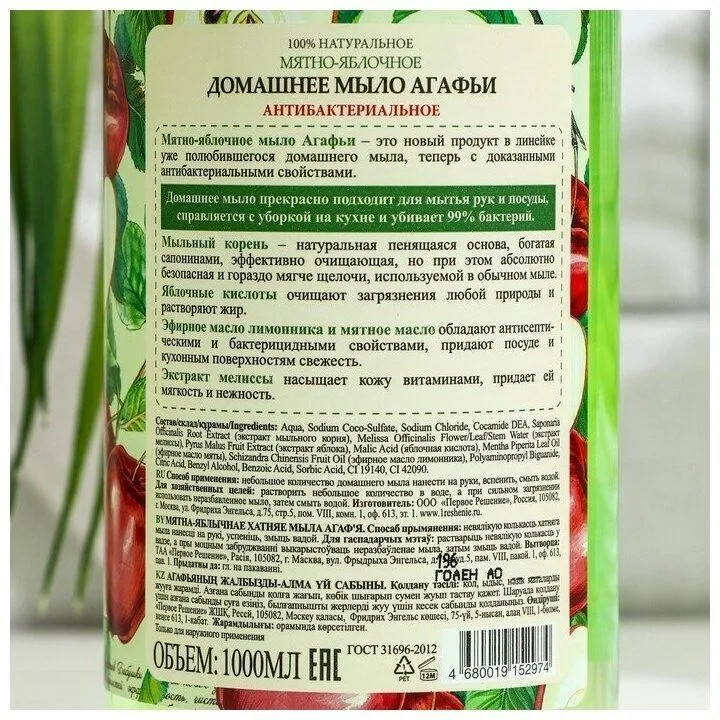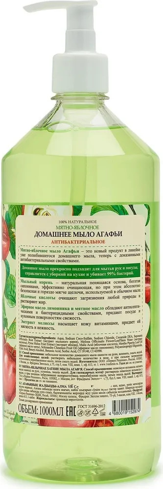 Рецепты Бабушки Агафьи Мыло для рук антибактериальное «Мятно-яблочное»