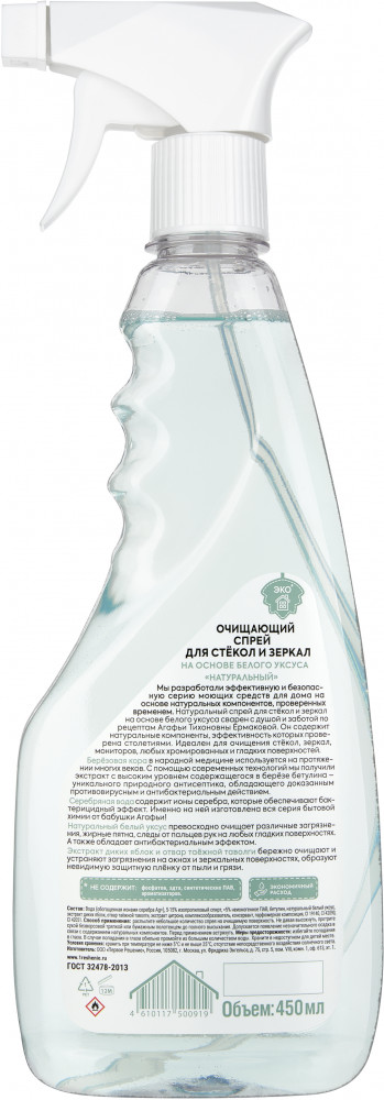 Рецепты Бабушки Агафьи Спрей для стекол и зеркал на основе белого уксуса-50% +17