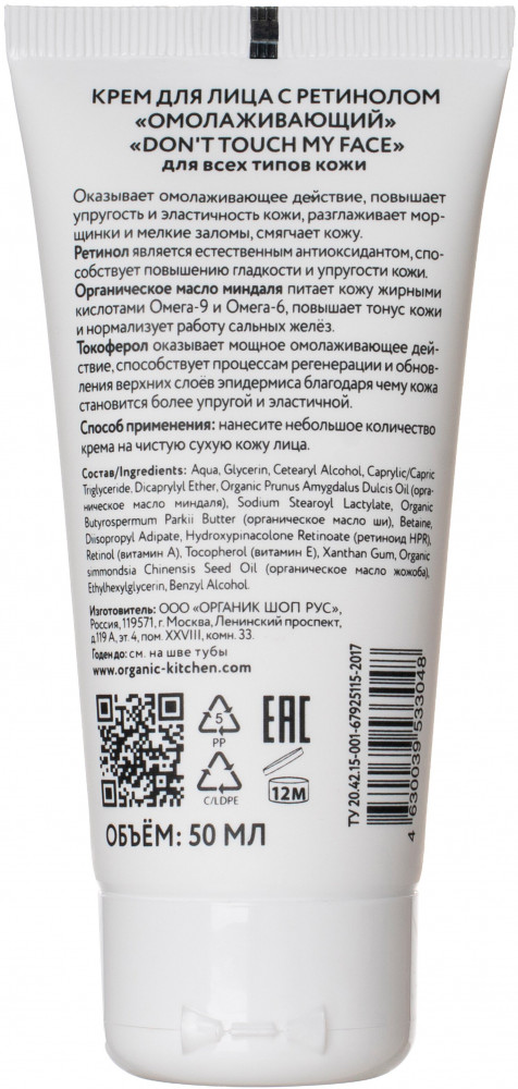 Organic Kitchen Крем для лица с ретинолом омолаживающий «Don't Touch my Face»