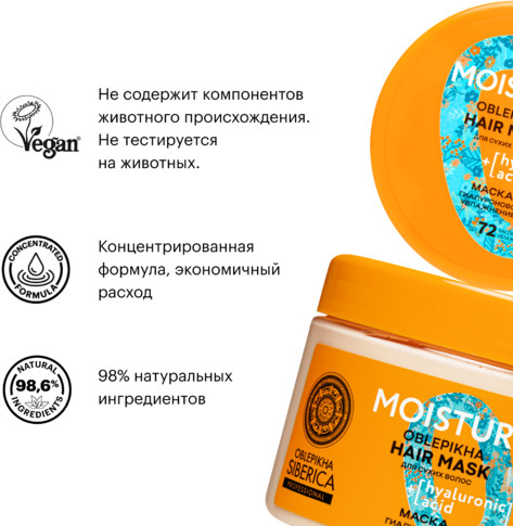 Natura Siberica Маска для сухих волос «Гиалуроновое увлажнение»
