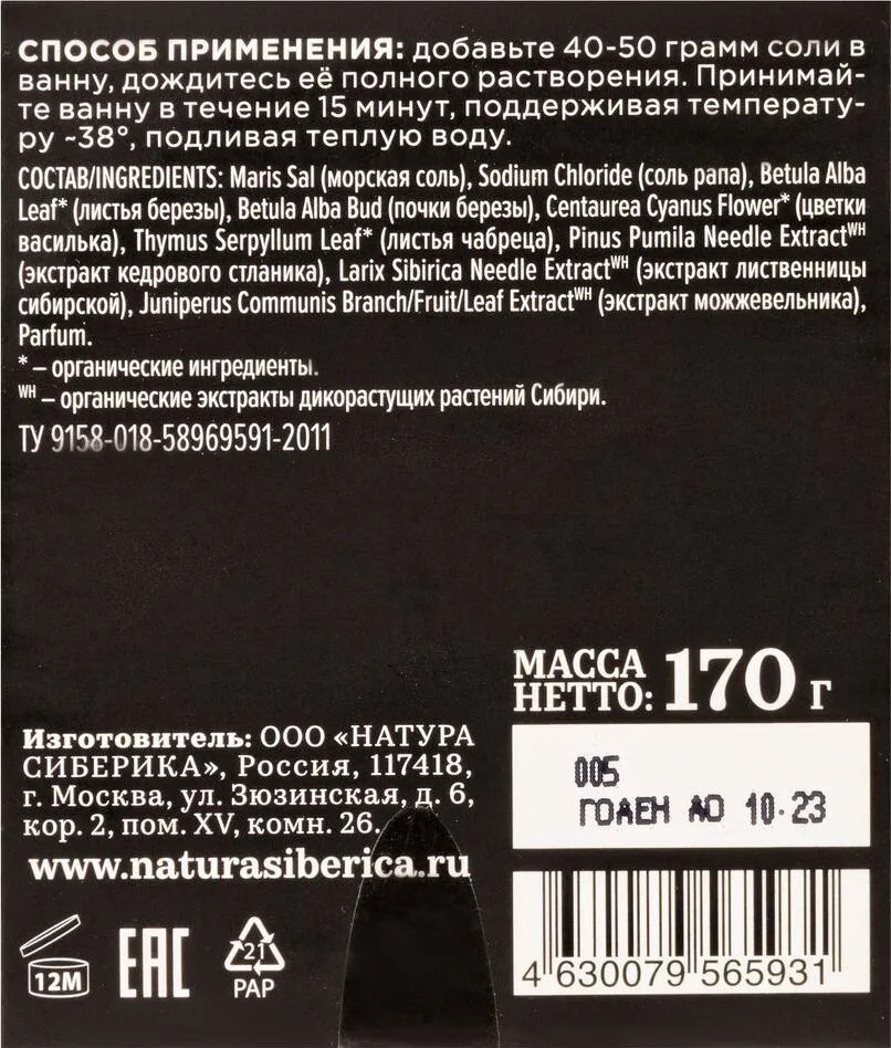 Отзывы «Соль для ванн «Березовая купель»»
