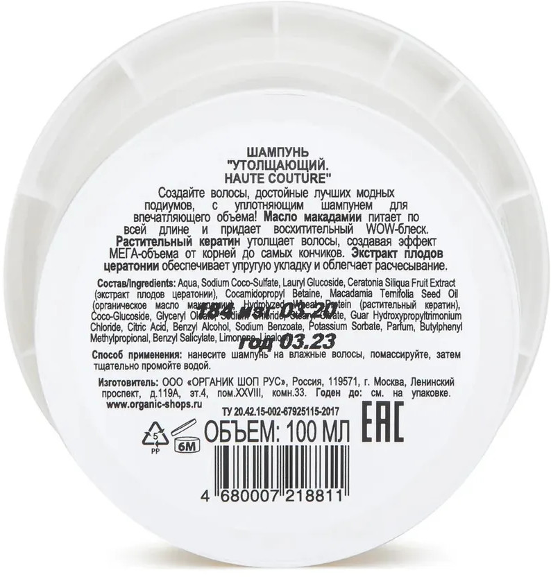 Organic Kitchen Шампунь для волос утолщающий «Haute couture»