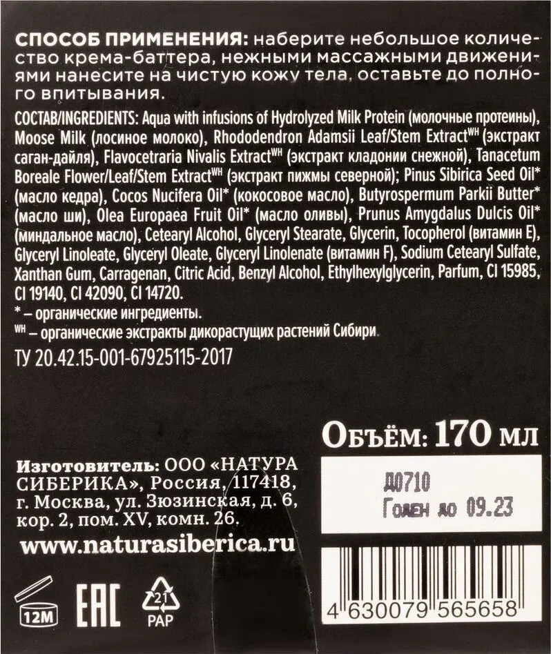 Natura Siberica Крем-баттер для тела «Сливочный»