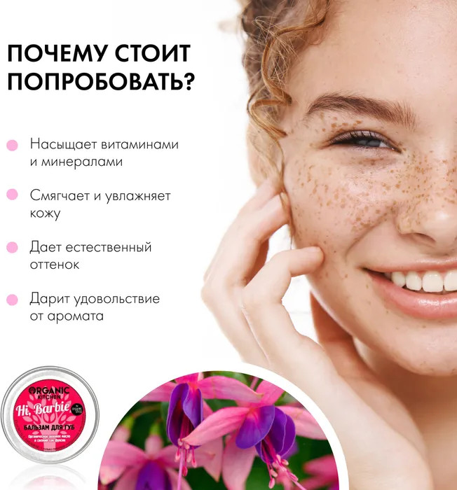 Organic Shop Бальзам для губ «Hi, Barbie»-10% +53 приятный запах увлажнение бесцветный