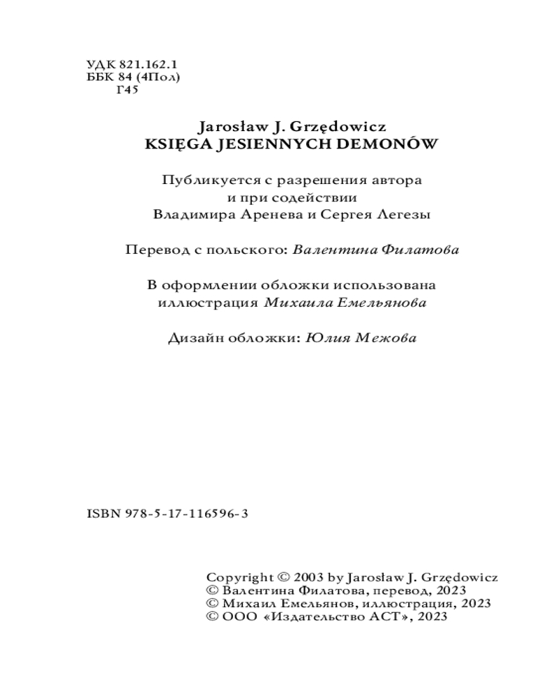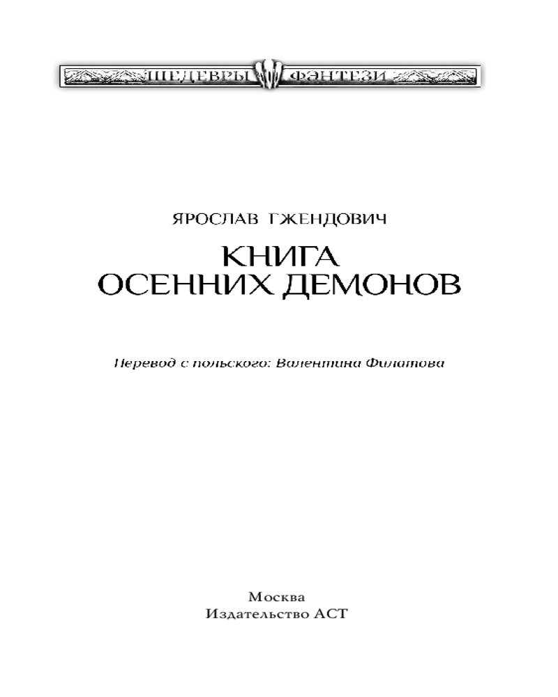Книга осенних демоновВ данный момент этот товар отсутствует в продаже. Возможно, у нас найдется аналогичный или похожий товар здесь. Серия: Шедевры фэнтези Люди не верят в демонов. Возможно, зря, потому что демоны верят в них. Эти истории рассказывают человеку, мир которого разрушается у него на глазах. Здесь, в странном отеле посредине леса, отпетый неудачник получает ключ к покорению мира, еще не подозревая, в какую игру ввязывается. Самый обычный визит пациента к психотерапевту оборачивается причудливой притчей о борьбе света и тьмы, где все не то, чем кажется. Простые, но такие реальные ужасы повседневности встречаются с мифом об оборотне. Здесь кошмар маскируется под обыденность, пока не покажет свое зловещее лицо во всей красе, а черные бабочки возвещают о смерти, только не сразу понятно, кого они пришли забрать на тот свет. Это повести о том, как сверхъестественное сталкивается с реальностью, они демонстрируют творчество Ярослава Гжендовича с непривычной стороны, лирической, но совершенно безжалостной. |