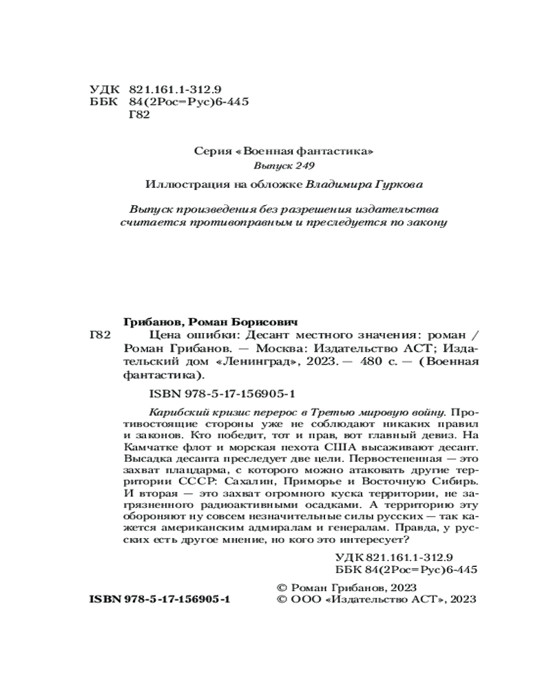 💳 Оплатить за товар можно при получении 🇰🇿 Есть бесплатная доставка по Казахстану от 1 дня 🎁 Копите бонусы с каждой покупки Серия: Военная фантастика Карибский кризис перерос в Третью мировую войну. Противостоящие стороны уже не соблюдают никаких правил и законов. Кто победит, тот и прав, вот главный девиз. На Камчатке флот и морская пехота США высаживают десант. Высадка десанта преследует две цели. Первостепенная — это захват плацдарма, с которого можно атаковать другие территории СССР: Сахалин, Приморье и Восточную Сибирь. И вторая — это захват огромного куска территории, не загрязненного радиоактивными осадками. А территорию эту обороняют ну совсем незначительные силы русских — так кажется американским адмиралам и генералам. Правда, у русских есть другое мнение, но кого это интересует? |