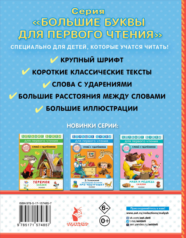 💳 Оплатить за товар можно при получении 🇰🇿 Есть бесплатная доставка по Казахстану от 1 дня 🎁 Копите бонусы с каждой покупки Серия: Большие буквы для первого чтения Знаменитые персонажи сказок Григория Остера — котёнок по имени Гав и его друг щенок — снова попадают в весёлые истории! На этот раз главным героям предстоит найти середину сосиски, выучить секретный язык, узнать, где лучше всего бояться и как надёжно спрятать котлету. В книгу вошли девять сказок про котёнка Гава и его друга. |