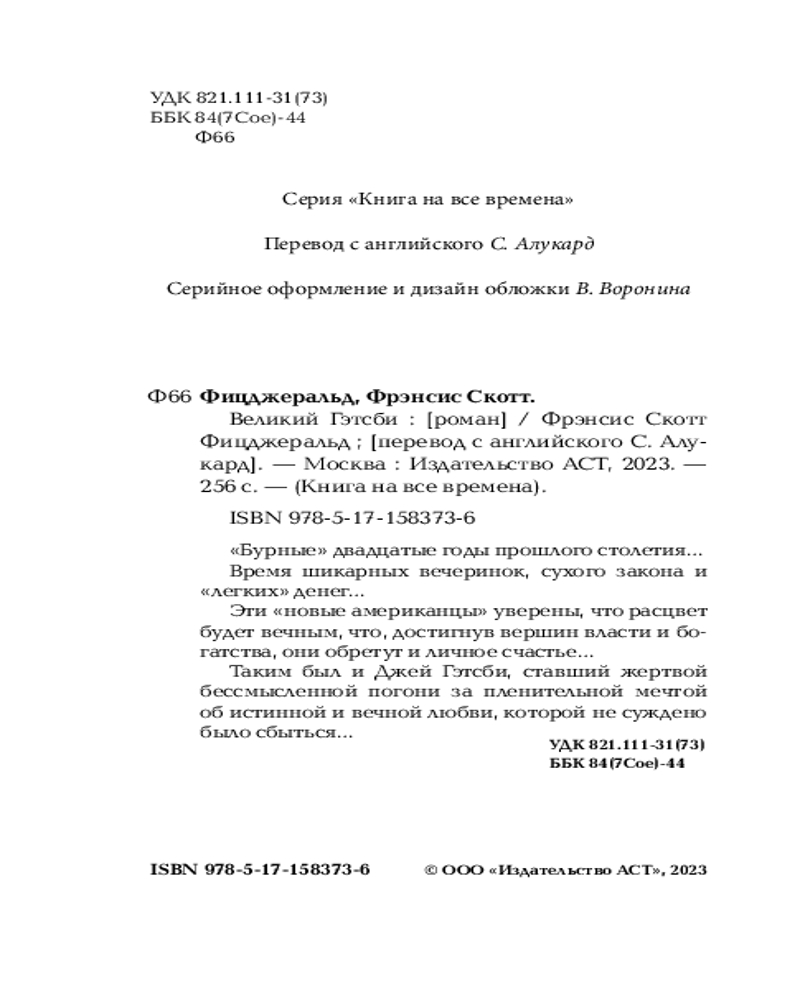 | Великий Гэтсби Фрэнсис Скотт Фицджеральд