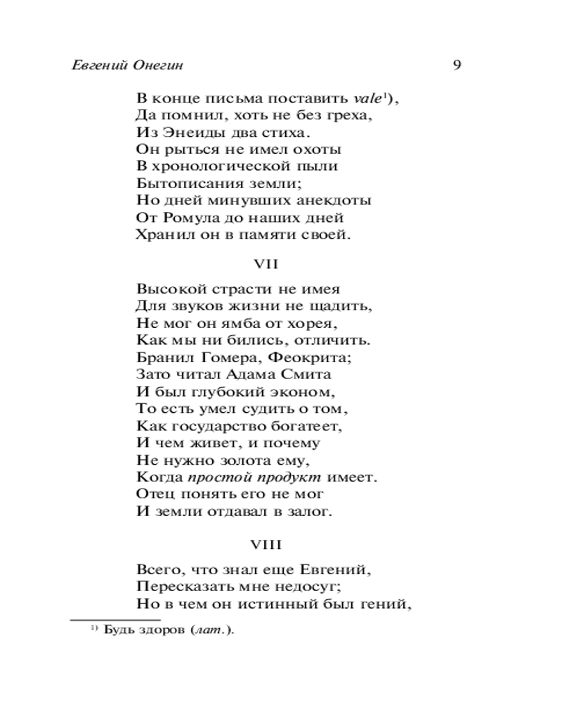Пронзительная любовная история, драматические повороты сюжета, тонкий психологизм персонажей, детальное описание быта и нравов той эпохи (не случайно Белинский назвал роман «энциклопедией русской жизни») — в этом произведении, как в зеркале, отразилась вся русская жизнь. «Евгений Онегин» никогда не утратит своей актуальности, и даже спустя два века мы поражаемся точности и верности «ума холодных наблюдений и сердца горестных замет» великого русского поэта.