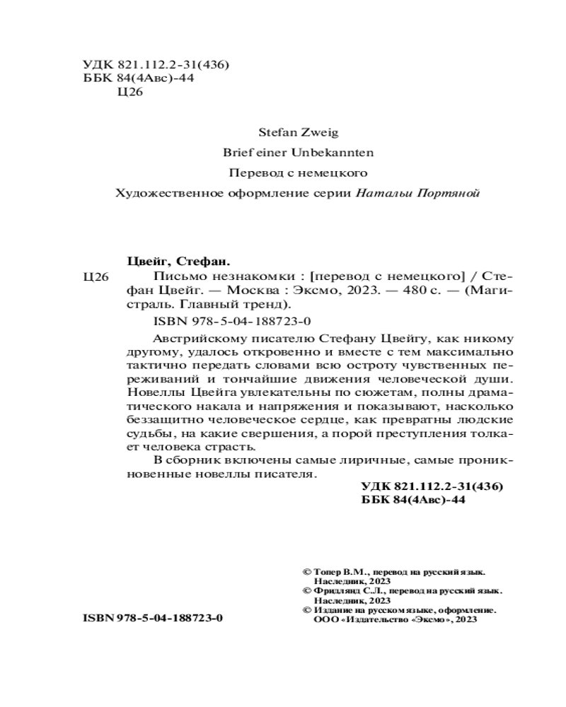 Письмо незнакомки-15% +114 красивая обложка бумага офсет оформление книга эмоции плохая печать