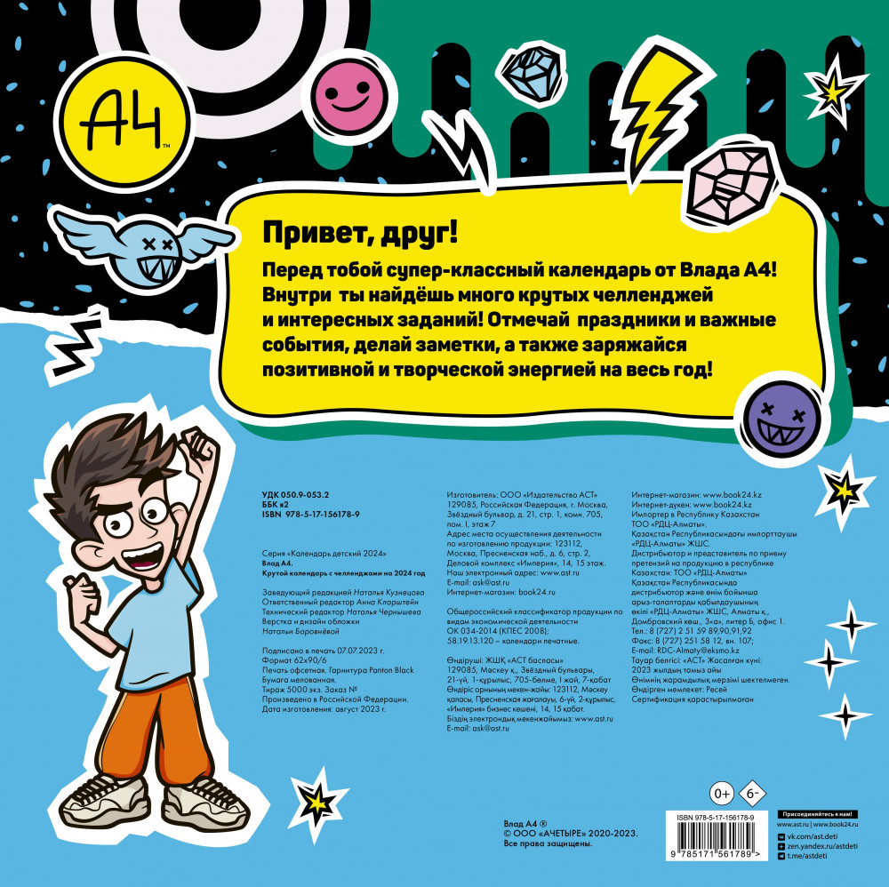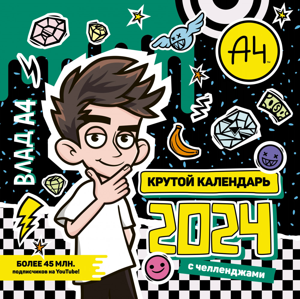 Привет, друг! Перед тобой супер-классный календарь от Влада А4! Внутри ты найдёшь много крутых челленджей и интересных заданий! Отмечай праздники и важные события, делай заметки, а также заряжайся позитивной и творческой энергией на весь год!