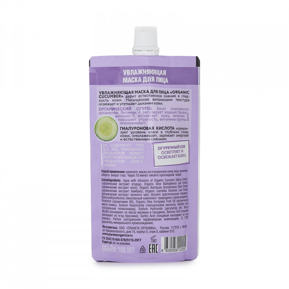Planeta Organica Маска для лица увлажняющая «Organic cucumber»
