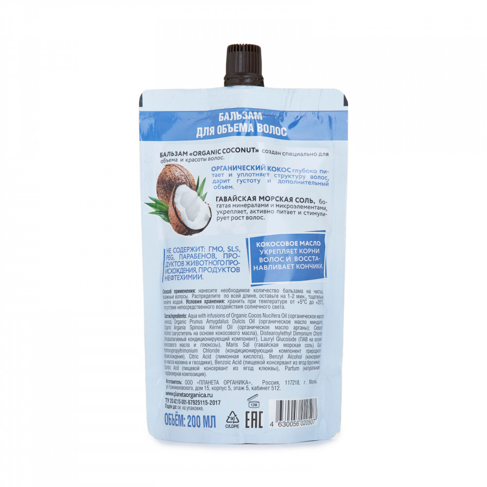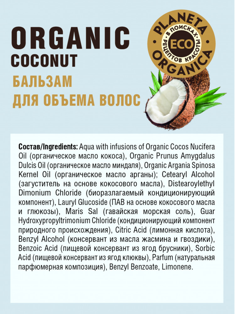 Planeta Organica Бальзам для объема волос «Organic coconut»
