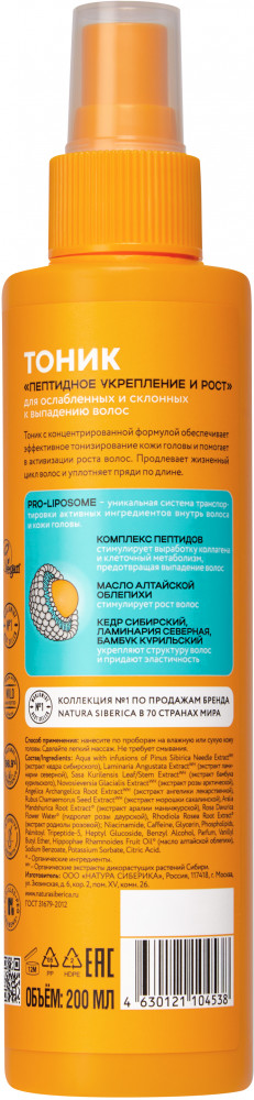 Natura Siberica Тоник для волос «Пептидное укрепление, рост»-30% +86
