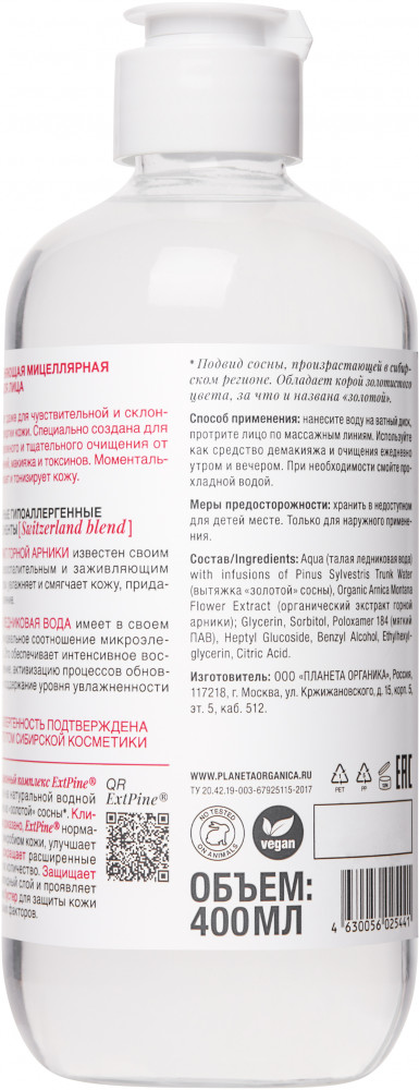 Planeta Organica Вода мицеллярнаяВ данный момент этот товар отсутствует в продаже. Возможно, у нас найдется аналогичный или похожий товар здесь. Серия: Pure Увлажняющая мицеллярная вода из коллекции «Pure» подходит даже для чувствительной и склонной к аллергии кожи. Специально создана для супербережного и тщательного очищения от загрязнений, макияжа и токсинов. Моментально освежает и тонизирует кожу. Инновационный комплекс ExtPine основан на натуральной водной вытяжке из «золотой» сосны. Клинически доказано, ExtPine нормализует микробиом кожи, улучшает тонус, сокращает расширенные поры и их количество. Защищает гидролипидный слой и проявляет себя как бустер для защиты кожи от внешних факторов. |