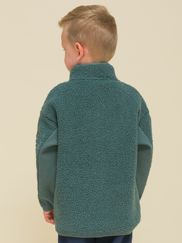 Детская толстовка на мальчика выполнена из мягкого бербер-флиса (фактура «барашка»). Вставки по бокам и рукавам из футера с начесом. Сочетание материалов с разной фактурой — один из модных трендов. Джемпер оверсайз-силуэта со спущенным плечом и увеличенной проймой подарит ребёнку комфорт и свободу движения. Толстовка с воротником-стойкой защищает шею от холода и ветра, нет необходимости дополнительно надевать шарф. По переду — застёжка на короткую молнию, что актуально в этом сезоне. Тканевый стоппер защищает подбородок от зажима молнией. Низ изделия фигурный, спинка слегка длиннее переда, рукава книзу заужены. По переду фигурные карманы — удобно пользоваться. Воротник, застёжка, низ толстовки, рукава и карманы окантованы эластичным пайпингом, что помогает изделию сохранять форму и при этом не растягивается при носке.