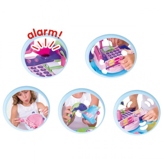 Набор не понравился. Читая отзывы на сайтах, узнала, что есть далеко некачественная подделка, в которой нет цифр на кассе и вся конструкция очень неустойчива. Видимо, нам именно это и досталось. Только одна кнопка на кассе издает звук, по цвету касса отличается от той, что изображена на фото. Нажимая на кнопку с наклеенными мною цифрами, нажимаются все остальные и беззвучно. Витрина и шкафчик постоянно падают, так как стоят неустойчиво. Одна ножка вообще меньше паза и поэтому не крепиться в отверстие. Пришлось обмотать ее скотчем, чтобы хоть как-то держалась. Кукла отличная, хорошего качества. В наборе помимо куклы и шкафчика с витриной тарелка, ложка, вилка, шприц, очки в футляре, пара баночек, соска, платьице, шапочка и трусики, остальное - куча картона! Из него даже плечики и стенка шкафа. Если бы не постоянно падающие и теряющие ножки, шкаф с витриной и бесполезная молчаливая касса, то с обилием картона можно было бы мириться. Но, разочарованы.