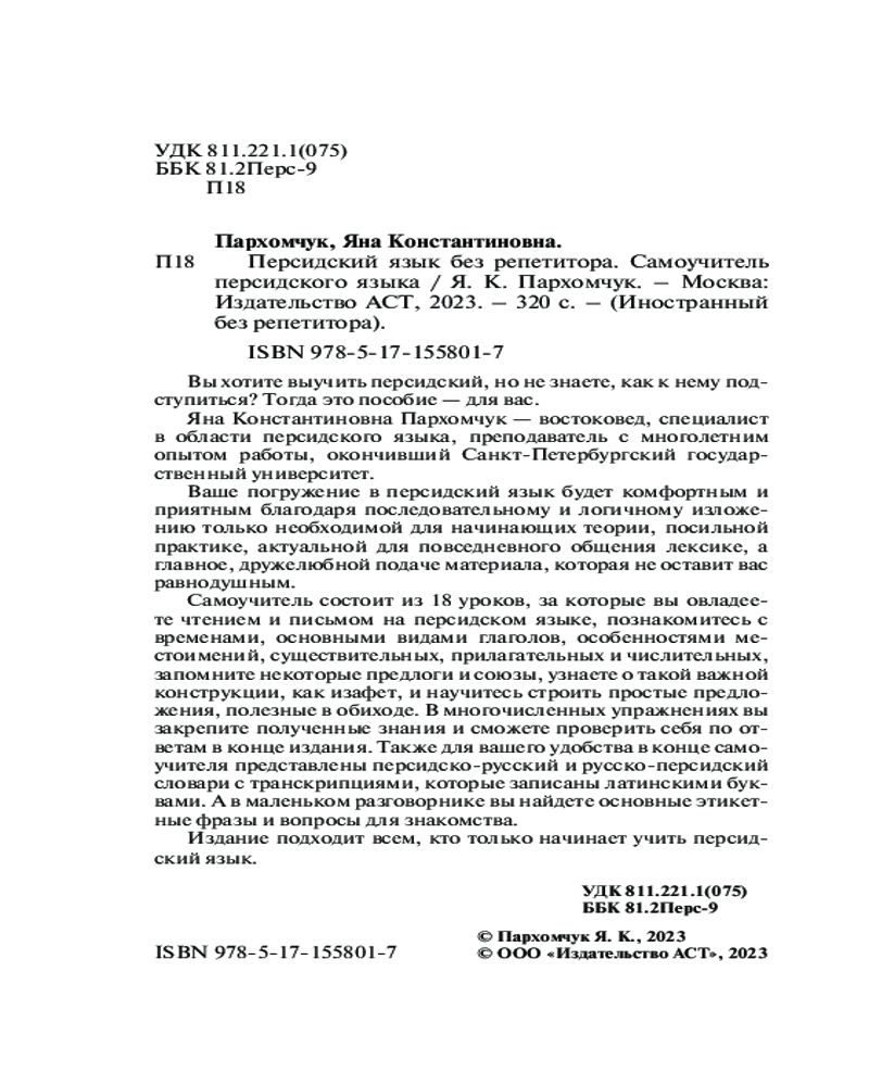 | Персидский язык без репетитора. Самоучитель персидского языка Яна Константиновна Пархомчук