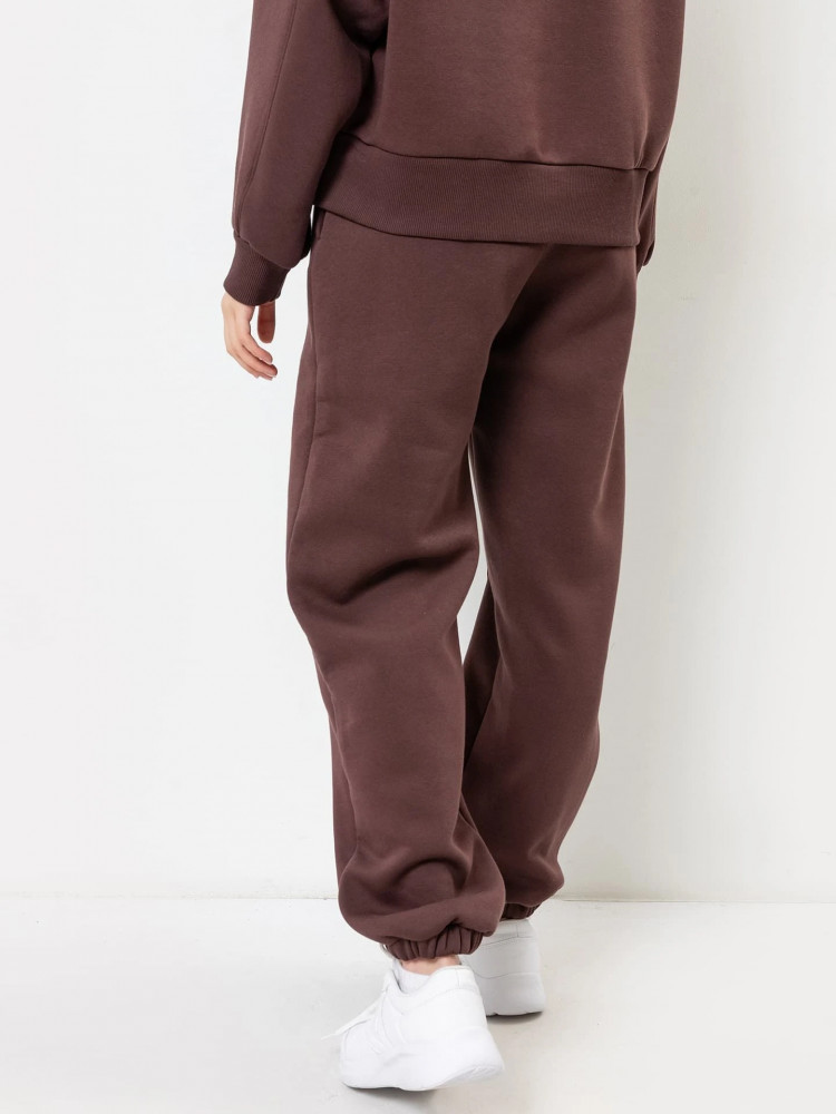 Универсальные джоггеры из футера с теплым подчесом. В составе полотна преобладает натуральный хлопок, прочности добавляет полиэстер. Брюки имеют свободный силуэт, что дарит полный комфорт во время любых активностей — спорта, прогулок, путешествий. Удобные боковые карманы, высокая линия талии, эластичный пояс, внутренний шнурок-завязка. Уютно, удобно, стильно!