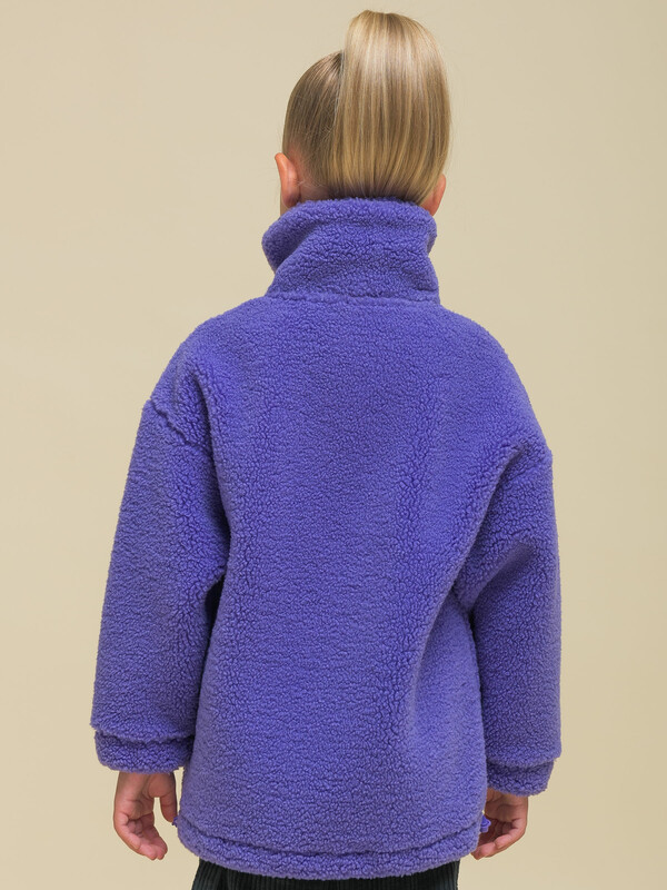 Толстовка детская для девочки. Куртка выполнена в сочетании двух материалов: бербер-флиса с мягкой фактурой «барашка» и гладкой курточной ткани. Это один из наиболее актуальных трендов сезона. Плюшевая толстовка модного оверсайз-силуэта со спущенным плечом не будет стеснять движений ребёнка, подарит ощущение комфорта и уюта. По переду застёжка на центральную молнию. Толстовка дополнена отложным воротником, который можно трансформировать с воротник-стойку с застёжкой на пату из курточной ткани с кнопкой — шея ребёнка защищена от холода и ветра. Куртка дополнена удобными прорезными карманами по бокам.