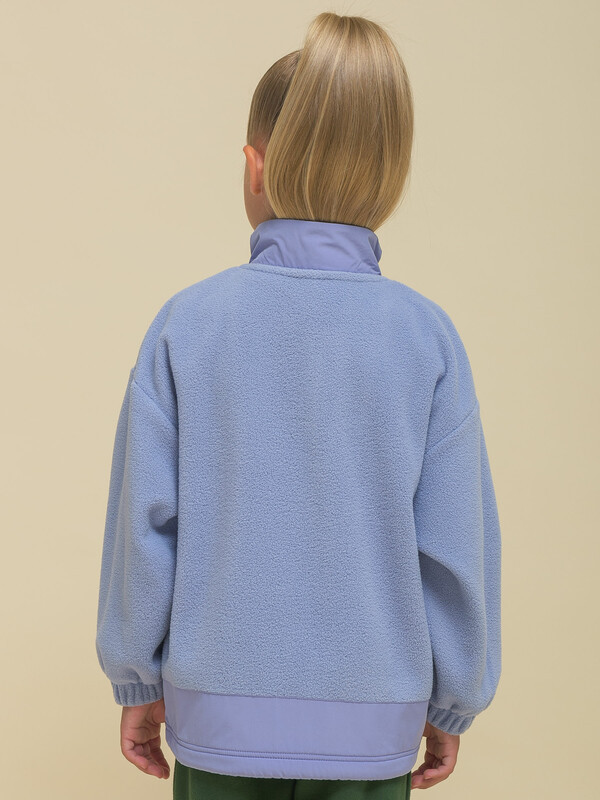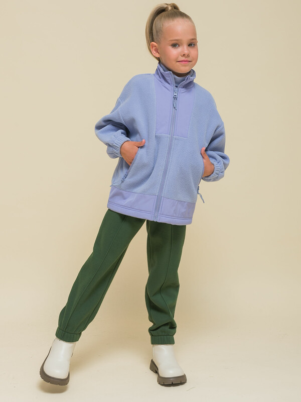 Толстовка детская для девочки. Куртка модного оверсайз-силуэта со спущенным плечом подарит ребёнку комфорт и свободу движения. Классическая застёжка на центральную молнию спереди, вверху молнии ограничитель для безопаного застёгивания. Толстовка на замке выполнена из флиса. Воротник и вставки по горловине и низу изделия — из гладкой курточной ткани. Стильно и практично. Сочетание материалов разных фактур — модный тренд сезона. А детали из курточной ткани менее маркие при частых прикосновениях к ним. По низу изделия предусмотрена регулировка объёма эластичным шнуром со стопперами.
