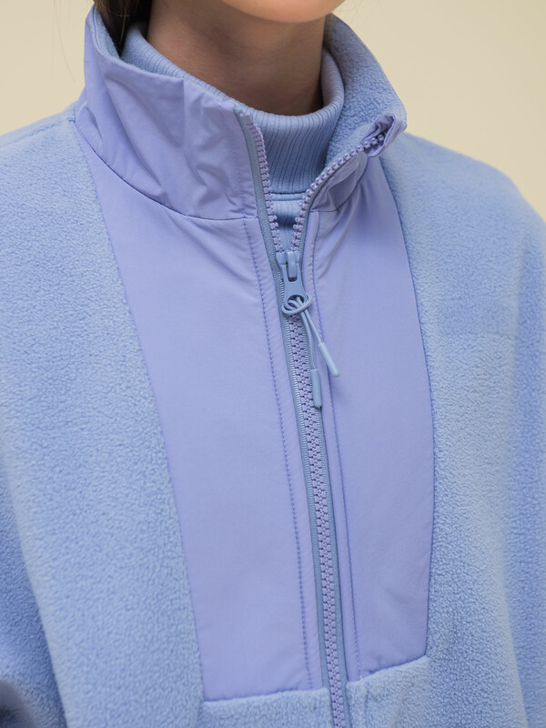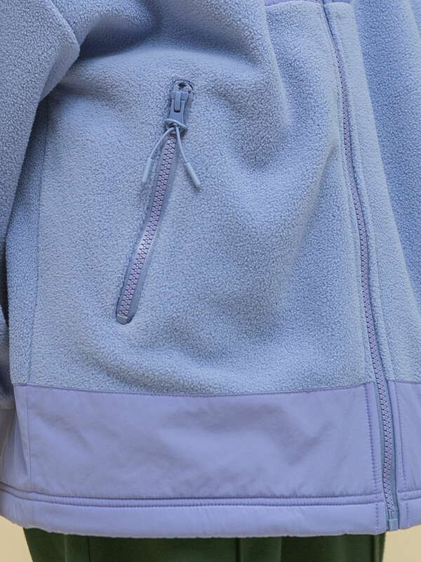 Толстовка с воротником-стойкой, который защищает шею от холода и ветра. В манжетах рукавов комфортная широкая резинка, благодаря чему рукава имеют актуальную объёмную форму. По бокам прорезные карманы на молниях — удобно пользоваться. Модель однотонная, без принта. Изделие неприхотливо в уходе. Одежда из флиса тёплая, лёгкая, мягкая, просто стирается и быстро сохнет, не выгорает и не скатывается, сохраняет первозданную форму в течение длительного времени. Зип-толстовка выполнена в двух трендовых цветах: фиолетовый (лавандовый оттенок) и бежевый.