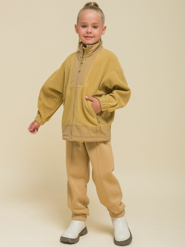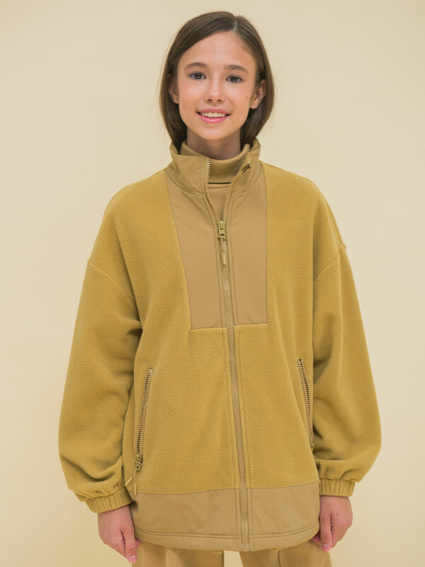 Толстовка детская для девочки. Куртка модного оверсайз-силуэта со спущенным плечом подарит ребёнку комфорт и свободу движения. Классическая застёжка на центральную молнию спереди, вверху молнии ограничитель для безопаного застёгивания. Толстовка на замке выполнена из флиса. Воротник и вставки по горловине и низу изделия — из гладкой курточной ткани. Стильно и практично. Сочетание материалов разных фактур — модный тренд сезона. А детали из курточной ткани менее маркие при частых прикосновениях к ним. По низу изделия предусмотрена регулировка объёма эластичным шнуром со стопперами.