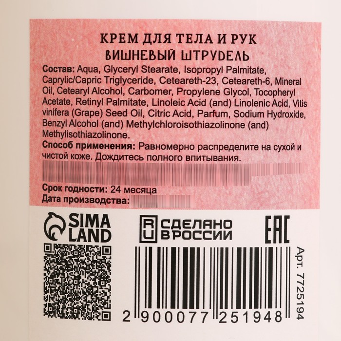 Добропаровъ Крем-сливки для тела банные «Вишневый штрудель»