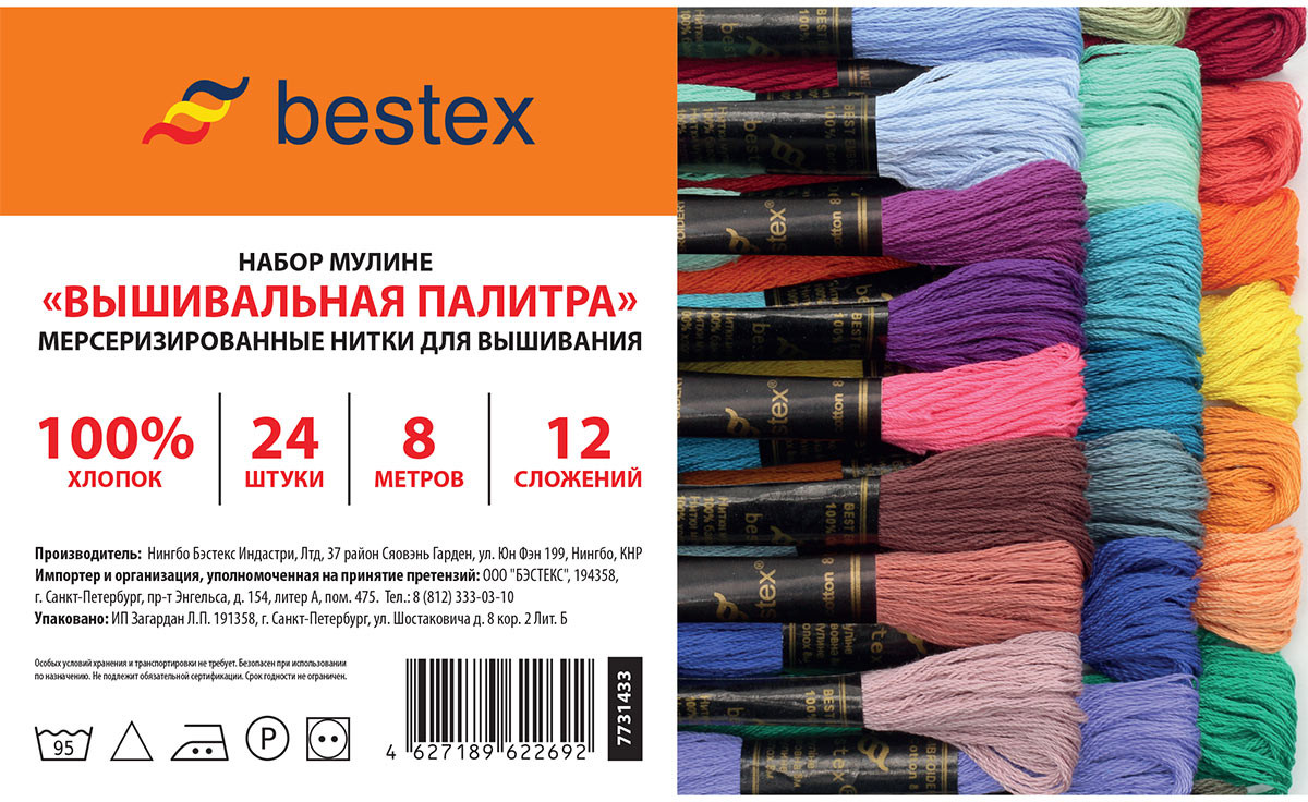 Bestex Набор мулине «Вышивальная палитра»В данный момент этот товар отсутствует в продаже. Возможно, у нас найдется аналогичный или похожий товар здесь. Набор мулине — удачный выбор, если вы любите сами создавать сюжеты для вышивки. Используйте разноцветные мулине, чтобы вышивать скатерти, салфетки, дорожки, создавать орнаменты в этническом стиле, кайму или надписи, воплощать другие авторские задумки. Нитки изготовлены из мерсеризованного хлопка, имеют мягкий блеск, они тонкие, износостойкие, равномерные по всей длине. При вышивании образуются аккуратные стежки. Каждая пасма состоит из 6 отдельных нитей одинаковой тонины. |