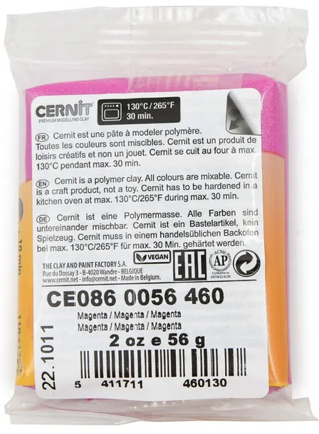 Cernit – марка полимерной глины и аксессуаров для работы. Это первоклассная глина для моделирования, она отлично подходят для создания кукол, сувениров, бижутерии. Термопластик после запекания имеет эффект полупрозрачной фарфоровой поверхности, создавая ощущение глубины цвета. Более того, он идеален для создания слепков, так как обладает способностью в точности повторять даже самые мелкие детали вплоть до отпечатков пальцев, листьев, перьев и других рельефных рисунков.