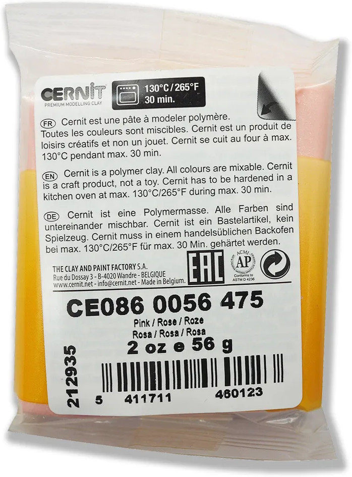 Cernit – марка полимерной глины и аксессуаров для работы. Это первоклассная глина для моделирования, она отлично подходят для создания кукол, сувениров, бижутерии. Термопластик после запекания имеет эффект полупрозрачной фарфоровой поверхности, создавая ощущение глубины цвета. Более того, он идеален для создания слепков, так как обладает способностью в точности повторять даже самые мелкие детали вплоть до отпечатков пальцев, листьев, перьев и других рельефных рисунков.